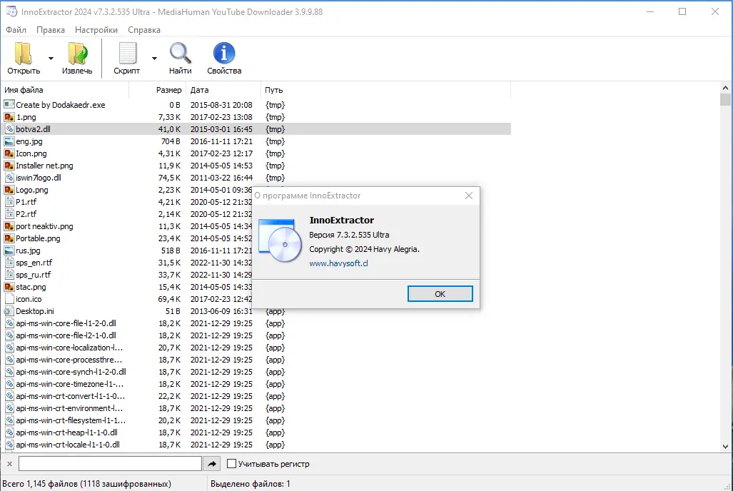 InnoExtractor разработан для глубокого анализа инсталляторов, созданных на базе Inno Setup, и предоставляет пользователям полный доступ к их внутреннему содержимому. Приложение использует технологию InnoUnp, что гарантирует высокую совместимость с различными версиями установщиков, включая устаревшие и современные сборки. Это позволяет детально исследовать файлы, скрипты и ресурсы, встроенные в установочный пакет, не прибегая к его выполнению.