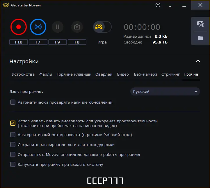 Использование Movavi Gecata не требует специальных знаний и настроек. После запуска приложения достаточно открыть нужную игру в полноэкранном режиме и нажать клавишу F10 для начала записи. Во время съёмки в углу экрана отображается индикатор, сигнализирующий о процессе захвата. Чтобы остановить запись, снова нажмите F10 — файл будет автоматически сохранён в выбранную папку.