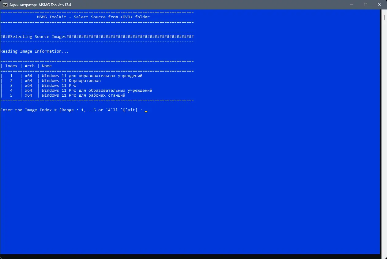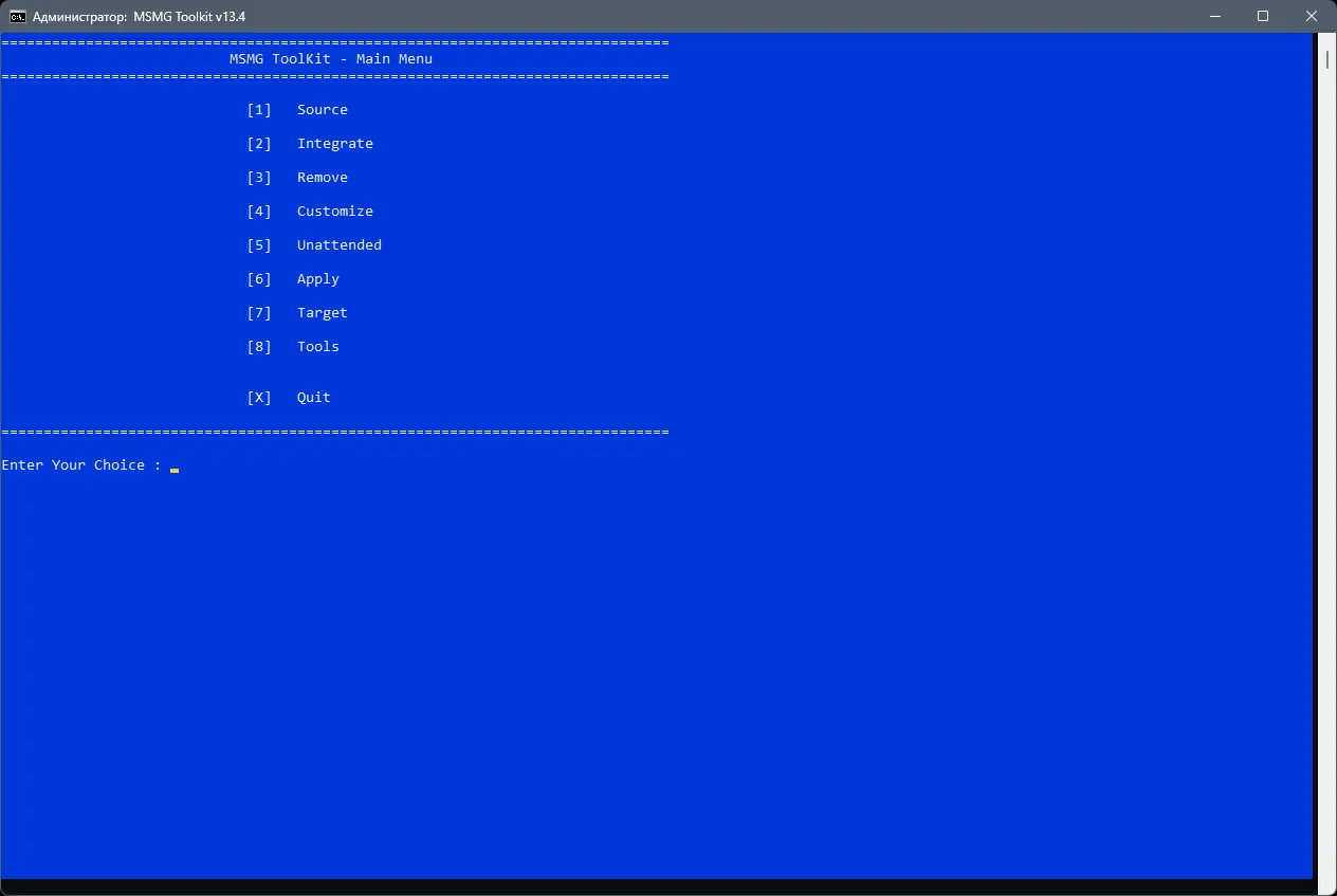 MSMG ToolKit предназначен для глубокой модификации установочных образов операционной системы Windows, включая версии от Windows 7 до последних релизов Windows 11. Работа осуществляется через командную строку, но интерфейс утилиты построен на простом меню с понятной навигацией, поэтому специальные знания в DOS не требуются. Пользователь может копировать исходные файлы с физических дисков, извлекать их из образов ISO, OEM или IMG, а также конвертировать ESD-файлы в более удобный формат WIM и наоборот.
