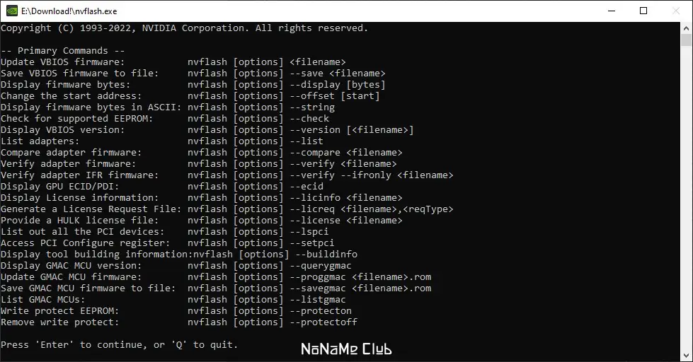 NVIDIA NVFlash представляет собой консольное приложение, разработанное для низкоуровневого взаимодействия с видеокартами NVIDIA. Основная функция утилиты — выполнение операций с BIOS, включая его обновление, восстановление после неудачной прошивки и создание резервных копий. Поддержка охватывает широкий спектр графических процессоров, начиная от архитектуры Pascal и заканчивая современными чипами Ada Lovelace. Это делает NVFlash незаменимым инструментом при модификации или ремонте видеокарт.