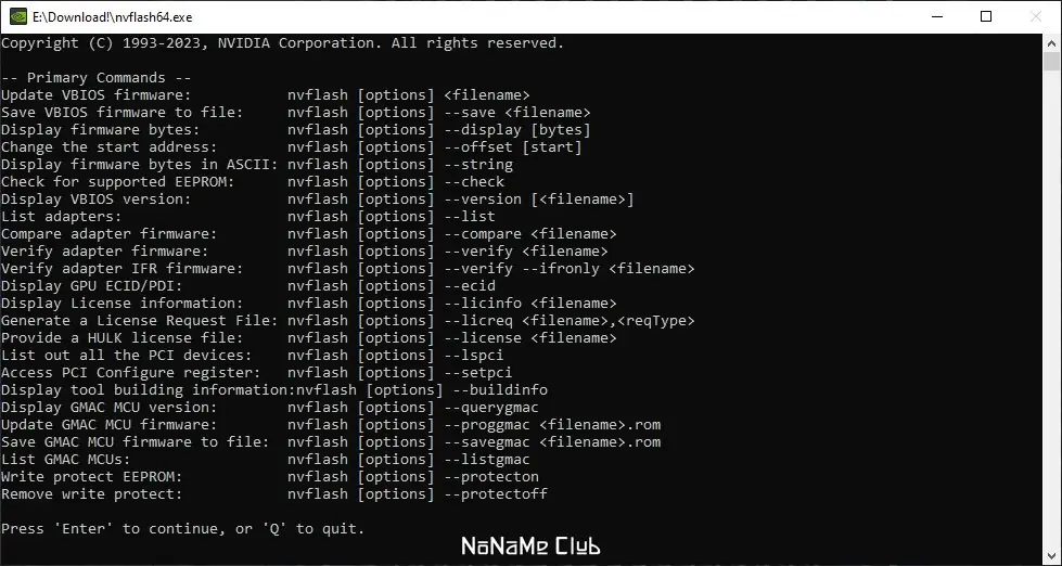 NVIDIA NVFlash — это утилита командной строки, предназначенная для работы с BIOS видеокарт на базе графических процессоров NVIDIA. Программа позволяет выполнять прошивку, резервное копирование и чтение информации о текущей версии микропрограммы видеоадаптера. Поддерживает широкий спектр GPU, включая серии Ampere, Turing, Pascal и более ранние архитектуры.