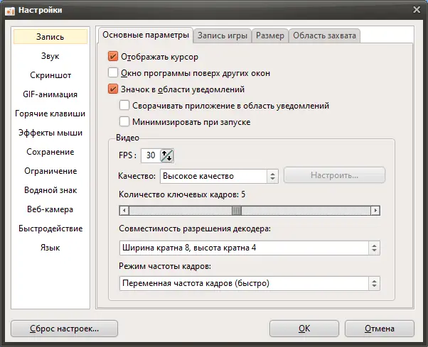 Программа сочетает в себе простоту использования и расширенные настройки, необходимые для профессиональной записи видео.