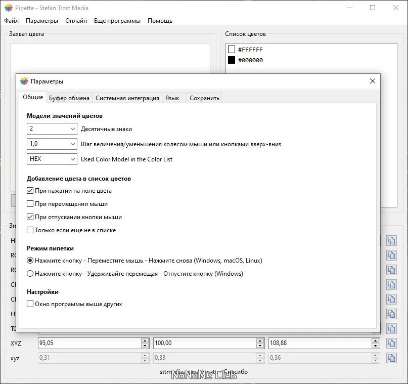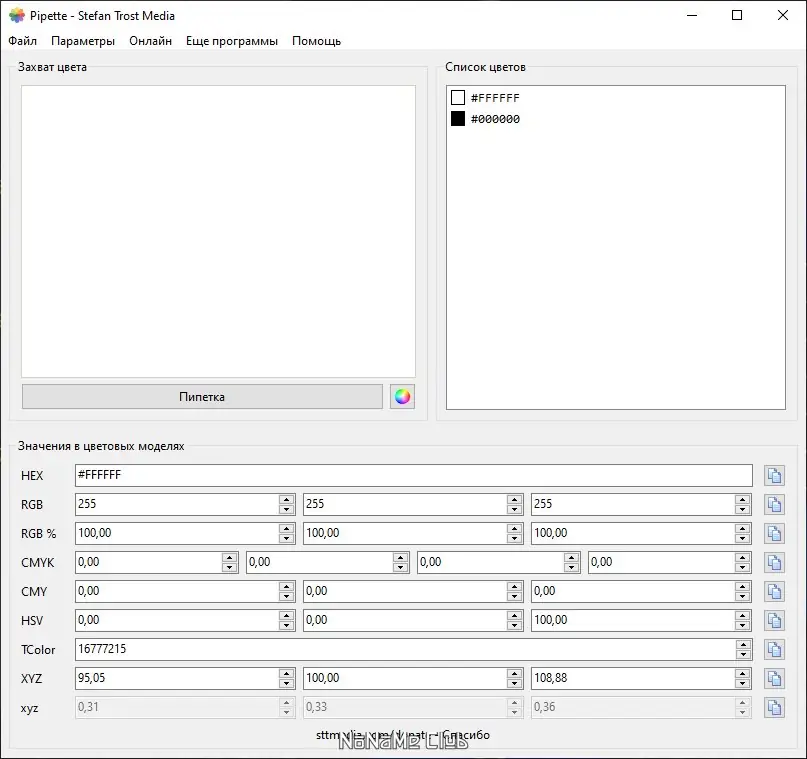 Pipette представляет собой цифровую пипетку, позволяющую быстро и точно определять цвет любого элемента на экране. Программа поддерживает множество форматов представления цвета, включая HEX, RGB, HSL, CMYK и другие, что делает её универсальным инструментом для работы с цветом. Благодаря портативной архитектуре, приложение можно запускать с флеш-накопителя без необходимости инсталляции.