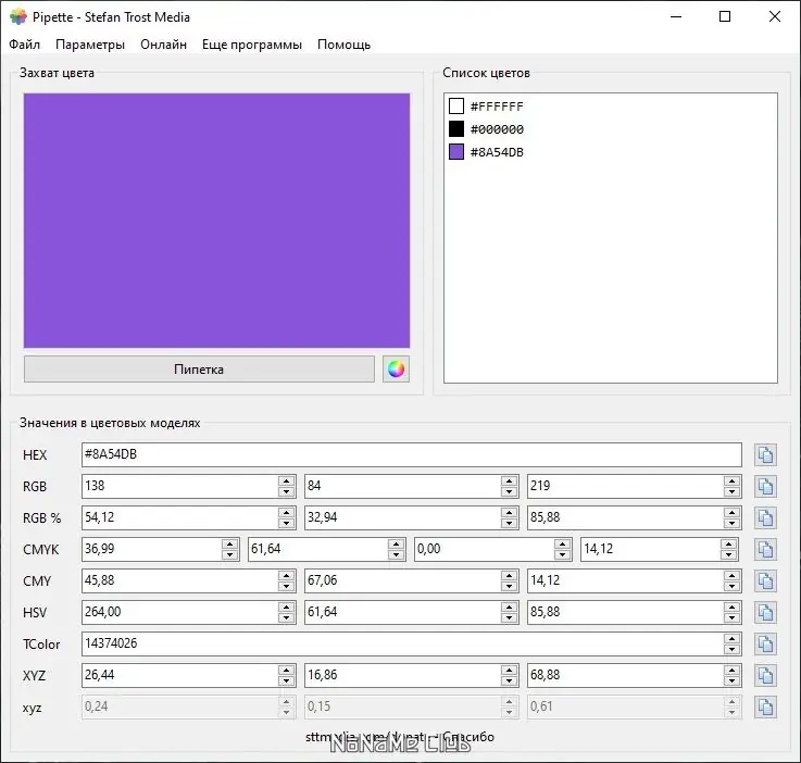 - Программа функционирует как дозатор цвета, позволяя точно выбирать нужный оттенок с экрана.