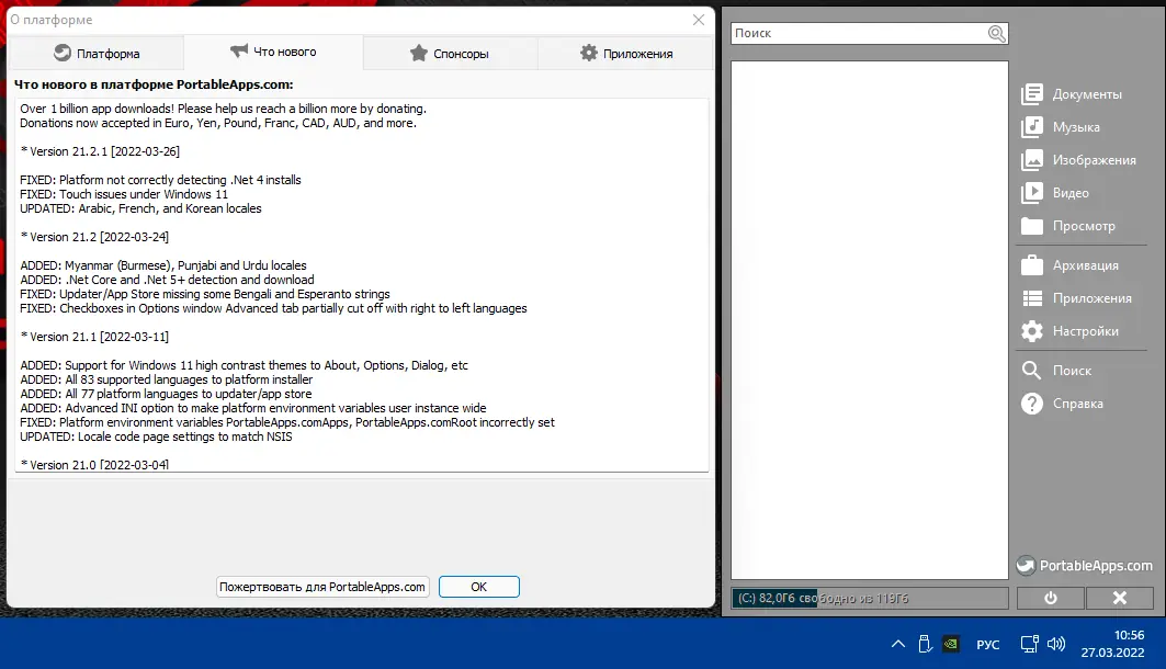 - Поддержка сотен бесплатных портативных приложений, включая браузеры, офисные пакеты и мультимедийные инструменты