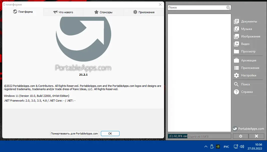 PortableApps.com Platform — это универсальная среда для управления портативными приложениями, позволяющая запускать программы без установки и не оставлять следов в системе. Платформа объединяет каталог приложений, встроенный менеджер обновлений и настраиваемое меню для удобного доступа к софту. Решение идеально подходит для использования на флешках, внешних дисках и облачных хранилищах.