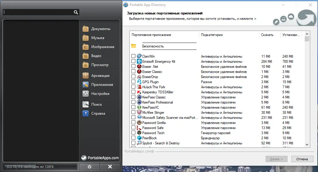 - Поддержка сотен бесплатных портативных приложений — от браузеров до офисных пакетов и медиаредакторов.