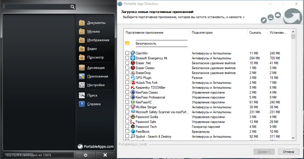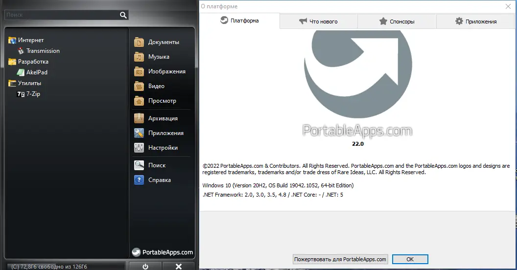 - Поддержка сотен бесплатных портативных приложений, включая браузеры, редакторы, офисные инструменты и мультимедийные утилиты