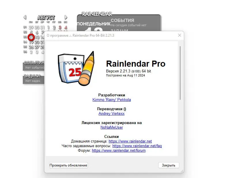 Rainlendar — это компактный и функциональный календарь для рабочего стола, который помогает эффективно управлять расписанием, событиями и задачами без загромождения интерфейса. Программа работает на различных операционных системах и поддерживает синхронизацию с популярными сервисами. Её гибкие настройки позволяют адаптировать внешний вид под индивидуальные предпочтения пользователя.