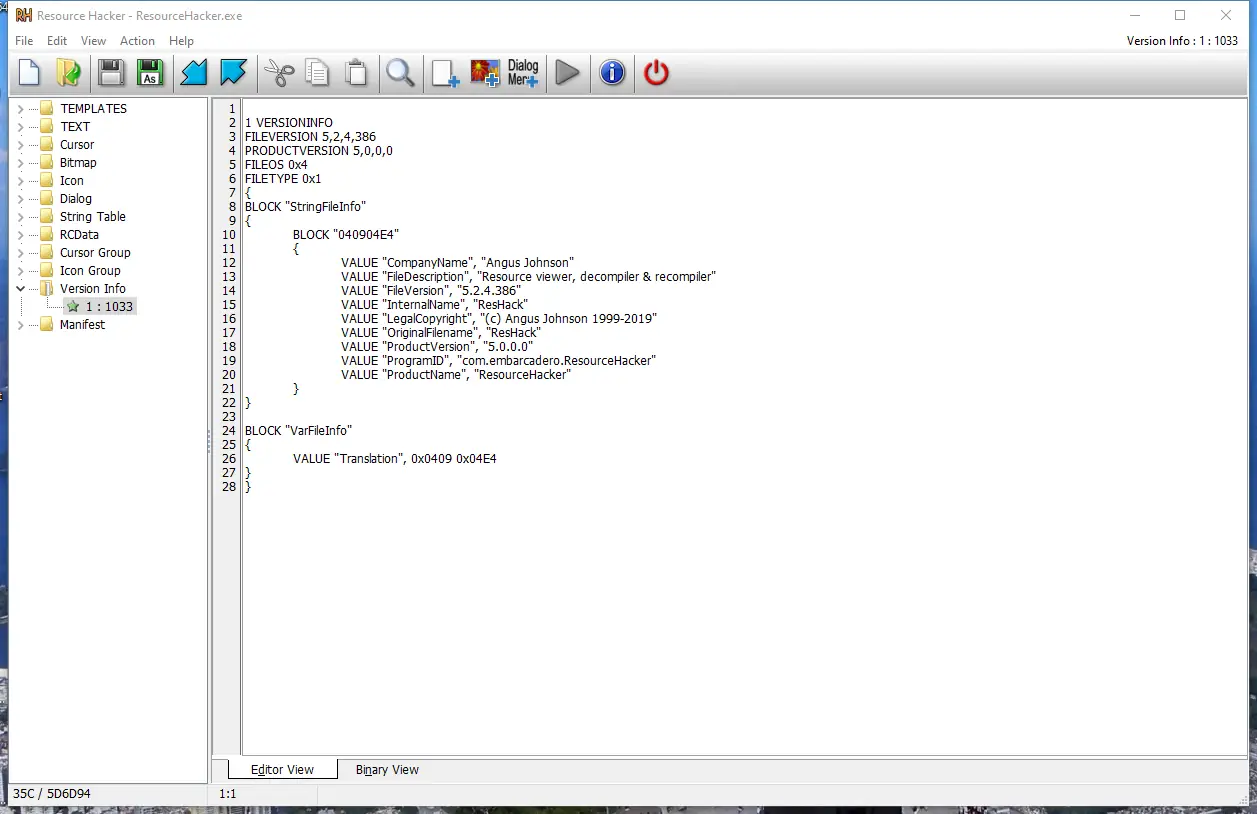 Описание Resource Hacker