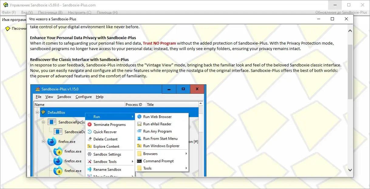 Как пользоваться Sandboxie