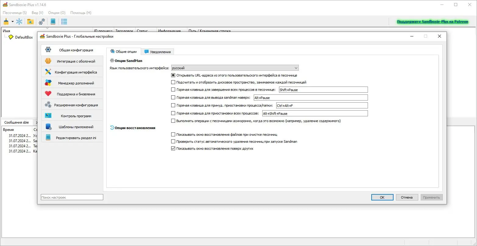 Работа с программой начинается с создания изолированного окружения — песочницы, в котором будут запускаться приложения. Пользователь может выбрать, какой именно процесс нужно изолировать: браузер, почтовый клиент или сторонний exe-файл. После запуска приложения через Sandboxie все его действия, включая создание файлов, изменение настроек и сетевую активность, фиксируются внутри временного хранилища.