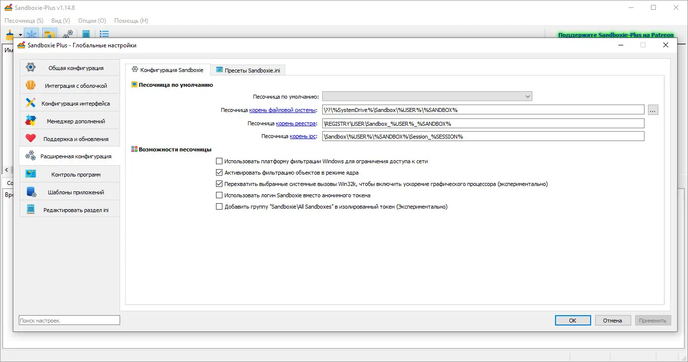 Sandboxie plus — это утилита с открытым исходным кодом, предназначенная для изолированного запуска приложений в защищённой среде. Программа создаёт виртуальное пространство, в котором исполняемые файлы не могут вносить постоянные изменения в операционную систему. После завершения работы все данные, включая временные файлы и следы активности, можно полностью удалить, оставив систему в изначальном состоянии.