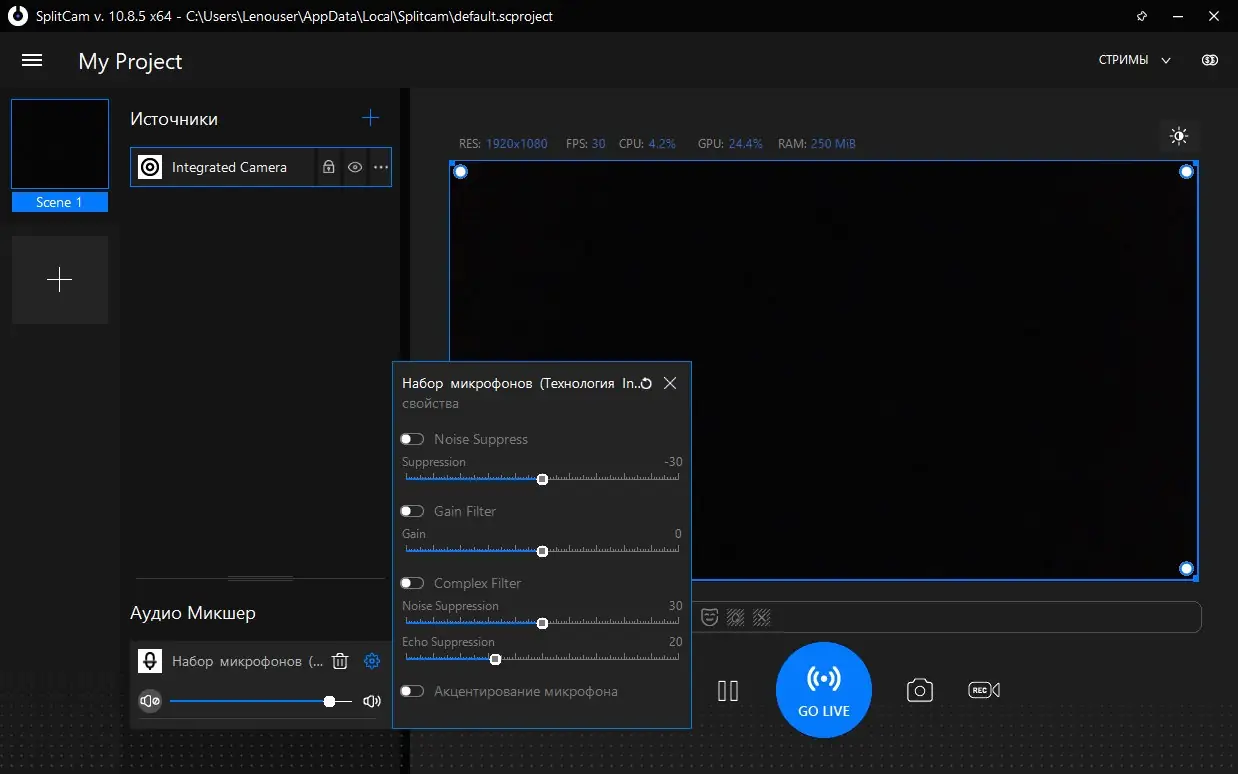 После установки программа интегрируется в систему как виртуальное видеоустройство. Достаточно выбрать SplitCam в качестве источника видео в любом приложении — мессенджере, видеосервисе или программе для записи. В главном интерфейсе доступен выбор эффектов: пользователь может загрузить 3D-модель, добавить рамку, наложить фильтр или вставить текстовую надпись. Настройки масштаба и области захвата позволяют фокусироваться на определённой части кадра. Все изменения применяются в реальном времени, без задержек и необходимости перезагрузки. Интерфейс интуитивно понятен даже новичкам, а наличие русскоязычной локализации упрощает освоение всех функций.