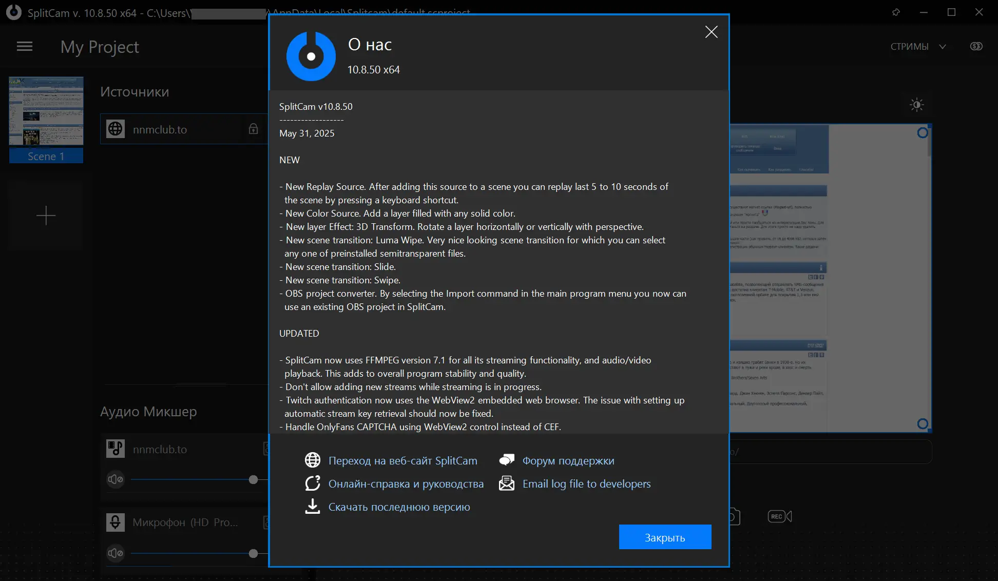 SplitCam сочетает в себе мощный функционал и простоту использования, что делает её популярной среди пользователей разного уровня. Программа стабильно работает на современных версиях Windows, включая Windows 10 и 11, и поддерживает как 32-, так и 64-битные системы. Несмотря на обилие возможностей, приложение остаётся лёгким и не перегружает систему.