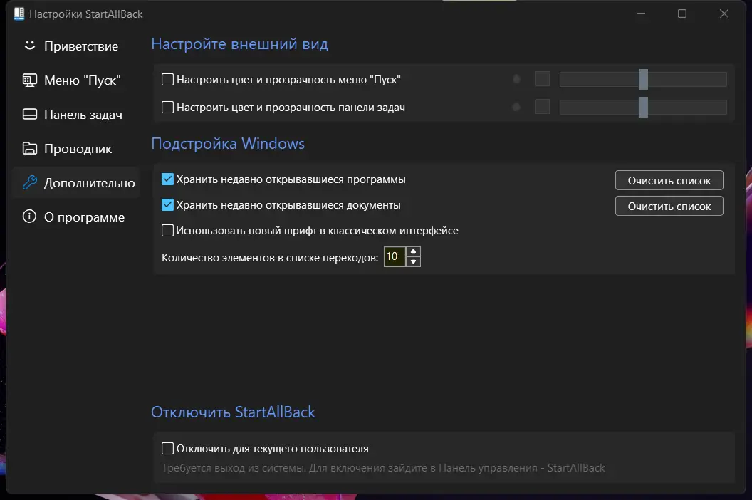StartAllBack демонстрирует высокую стабильность и совместимость с различными версиями операционной системы. Программа не перегружает систему и работает незаметно, оставляя ресурсы для других задач. Благодаря глубокой интеграции, она обеспечивает естественное поведение интерфейса, не вызывая ощущения стороннего вмешательства.