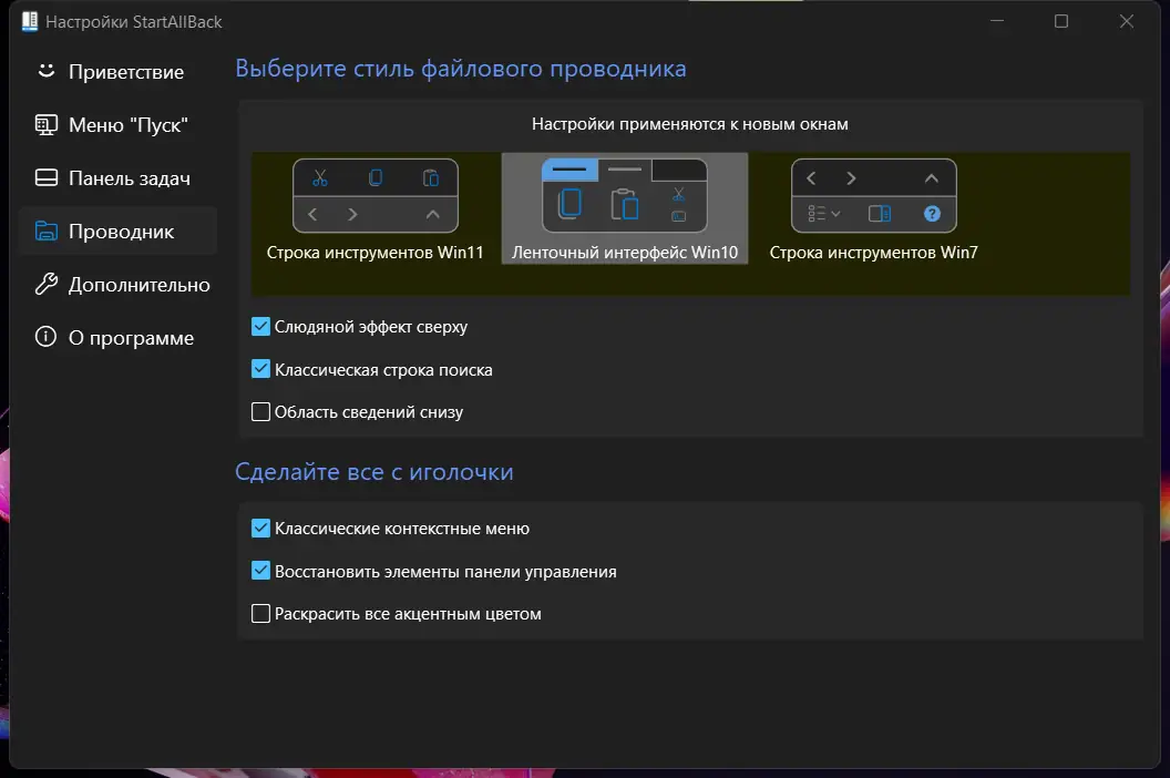 StartAllBack — это утилита, которая возвращает классическое меню «Пуск» в операционные системы Windows 10 и Windows 11, воссоздавая привычный интерфейс Windows 7. Программа устраняет неудобства новых версий ОС, позволяя пользователю быстро адаптироваться к обновлённой системе. Она идеально подойдёт тем, кто ценит простоту, скорость и привычную навигацию.