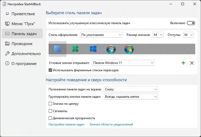 StartAllBack — это утилита, ориентированная на пользователей, которым неудобен новый интерфейс windows 11. Программа заменяет обновлённое меню «Пуск» на классическое, как в windows 7, воссоздавая все ключевые элементы: панель быстрого доступа, список недавно запущенных приложений, возможность закрепления программ и строку поиска. Интерфейс становится более предсказуемым и удобным, особенно для тех, кто работает за компьютером длительное время. Утилита не требует перезагрузки системы после настройки и интегрируется напрямую в оболочку.