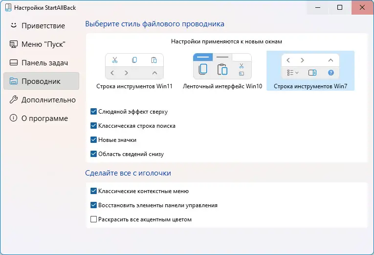 StartAllBack — это программное обеспечение, предназначенное для пользователей, стремящихся вернуть классический интерфейс рабочего стола в современные версии операционной системы. Решение идеально подходит для тех, кто привык к традиционной структуре меню «Пуск» и хочет избавиться от особенностей дизайна Windows 11. Программа позволяет настроить внешний вид и поведение системы под индивидуальные предпочтения, обеспечивая комфортную работу без лишних задержек и переходов к новому стилю интерфейса.