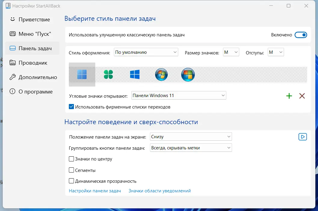 StartAllBack не внедряет сторонние службы и работает исключительно в рамках системы, что делает её безопасной и легковесной.