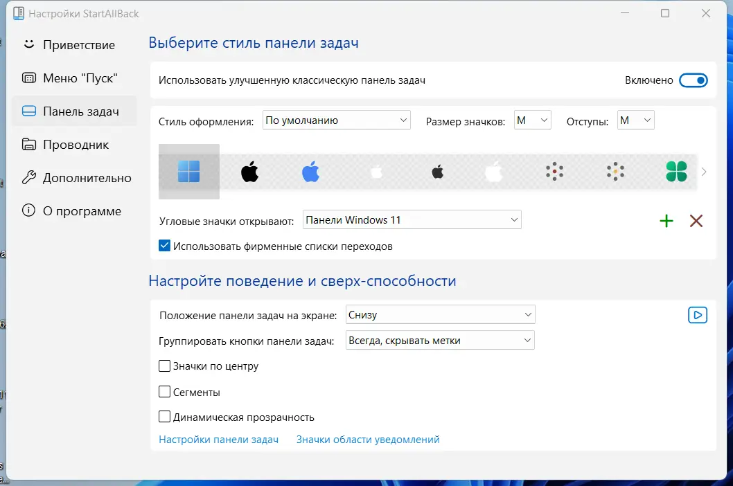 - StartAllBack позволяет разделить приложения: классические программы остаются на рабочем столе, а магазинные — отображаются только в соответствующем разделе.