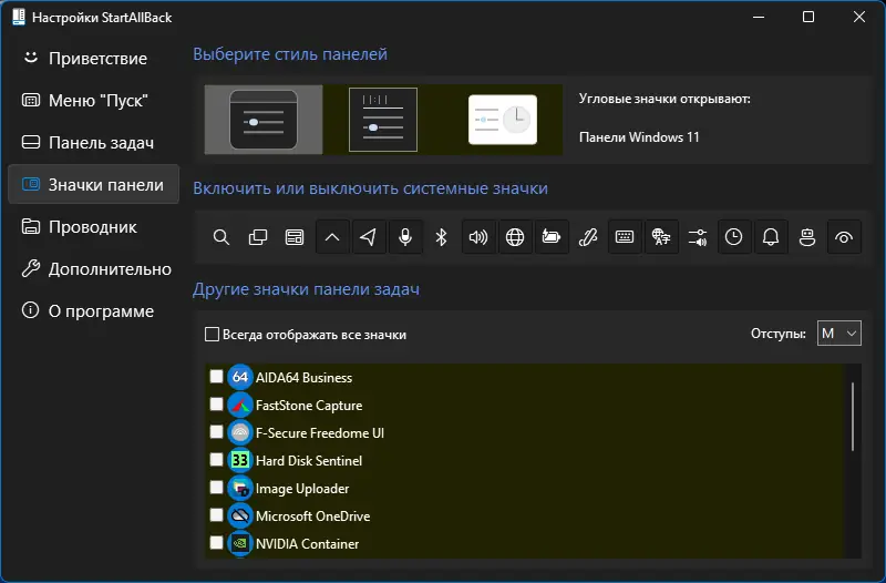 После установки StartAllBack автоматически применяет настройки по умолчанию, имитируя классическое меню. Пользователь может открыть панель конфигурации через контекстное меню кнопки «Пуск» и выбрать нужный стиль интерфейса. Доступны опции изменения скинов, прозрачности, поведения меню, углов запуска и внешнего вида кнопки. Программа позволяет гибко настраивать отображение приложений — например, скрывать элементы из магазина или оставлять только закреплённые ярлыки. Все изменения применяются в реальном времени без перезагрузки системы.
