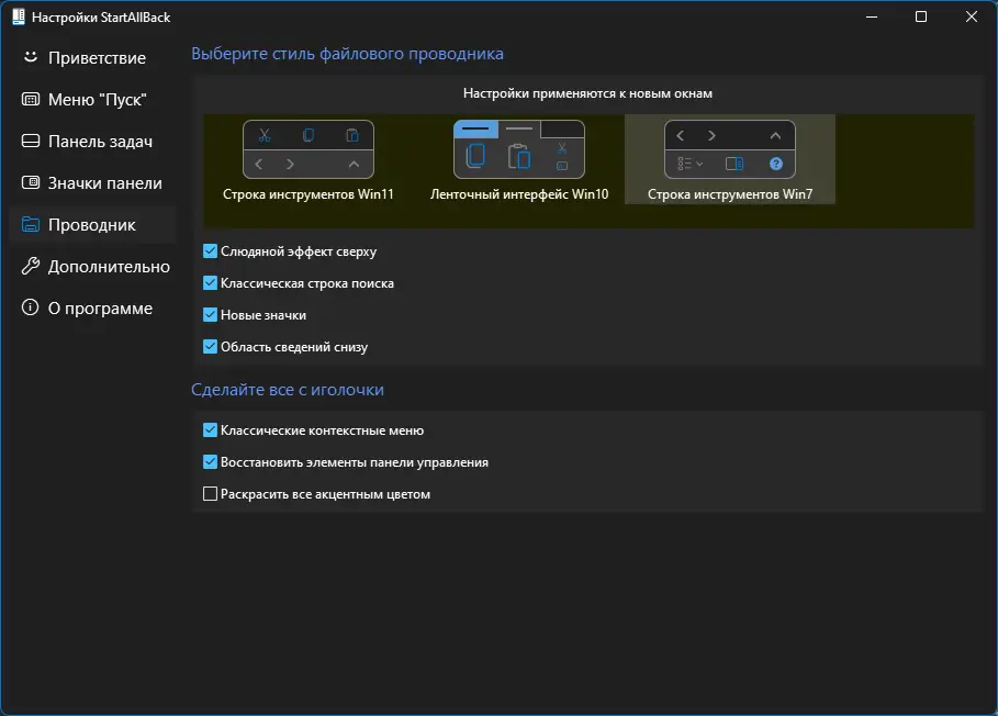 StartAllBack — это инструмент для пользователей, желающих вернуть классический интерфейс операционной системы с полной поддержкой современных версий windows. Программа возвращает привычное меню «Пуск» и улучшает навигацию в windows 11, делая систему более предсказуемой и удобной. Она идеально подходит тем, кто не хочет мириться с ограничениями нового интерфейса.