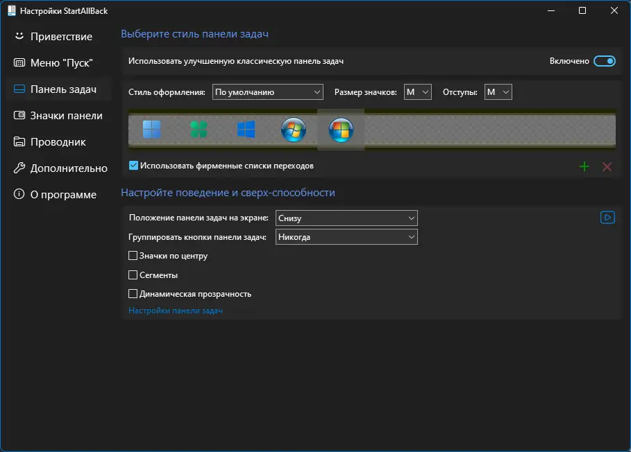 - В версии 3.9 временно отключена поддержка классической панели задач для сборок 24H2.