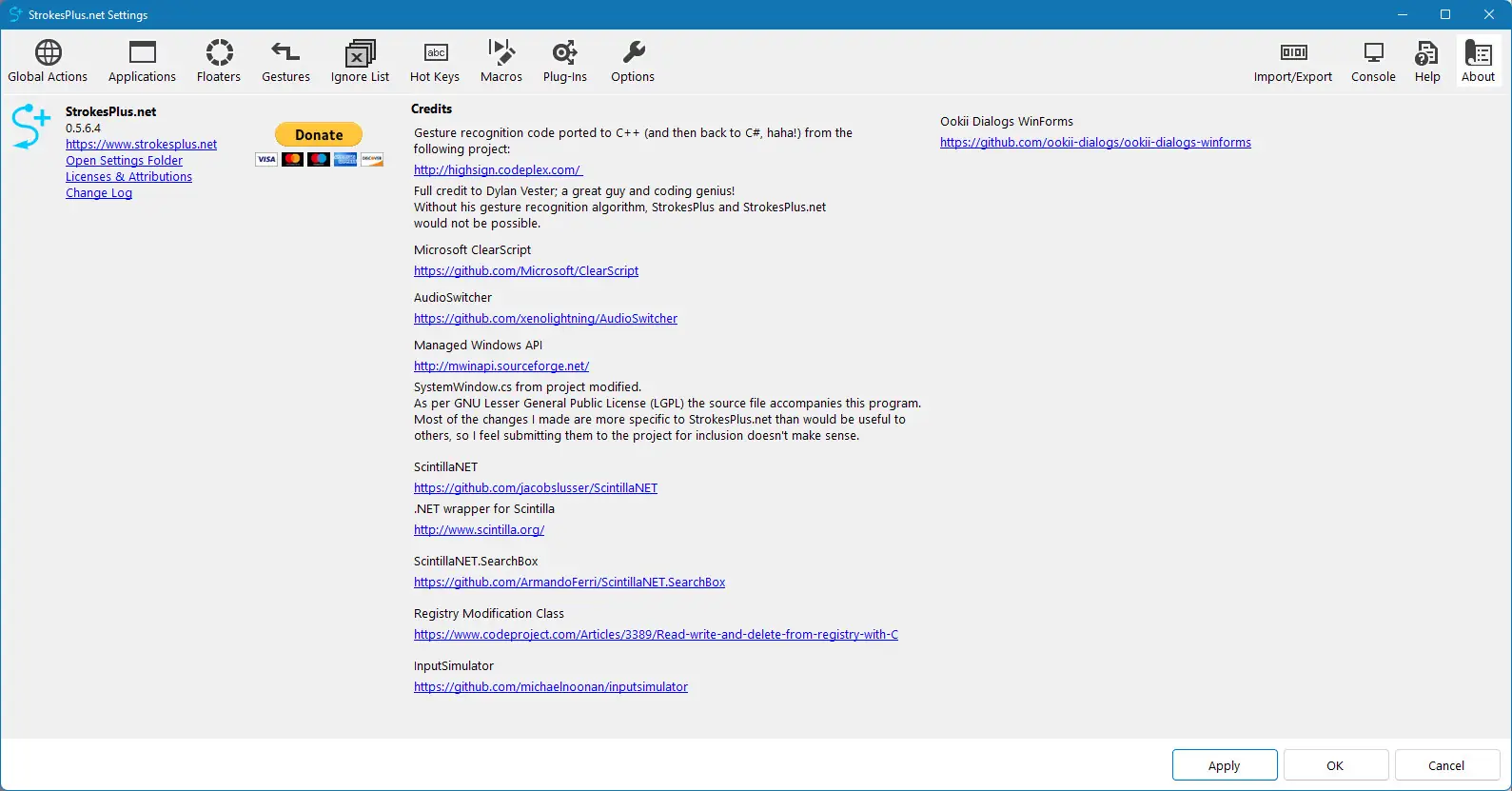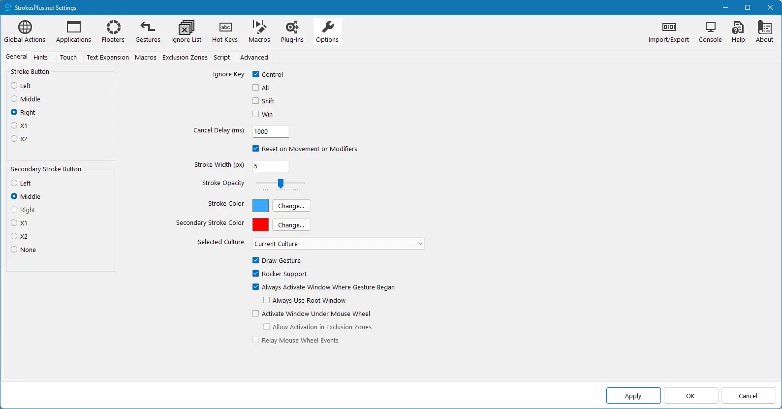 StrokesPlus.net — это современная утилита, призванная упростить взаимодействие с операционной системой за счёт распознавания движений мыши. Программа является логическим продолжением StrokesPlus и предлагает расширенный набор инструментов для автоматизации действий. Благодаря встроенной поддержке JavaScript через движок Chrome V8 и интеграции с .NET Framework, пользователи получают практически неограниченные возможности по настройке поведения системы.