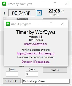 Timer by WolfEywa — это легковесное приложение, работающее как таймер и часы, разработанное под интервальную систему тренировок Конкина, но также применимое в кулинарии, учебе и других повседневных задачах. Программа не требует установки, не оставляет следов в системе и сохраняет настройки через конфигурационный файл. Поддерживает три независимых таймера, отсчет времени в формате ч:м:с и возможность интеграции в рабочий процесс без перегрузки ресурсов.