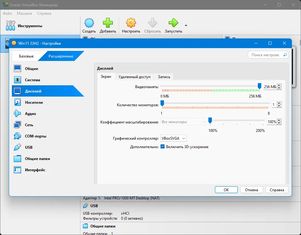 - Поддержка удалённого доступа через протокол RDP, что позволяет управлять виртуальной машиной с другого устройства.