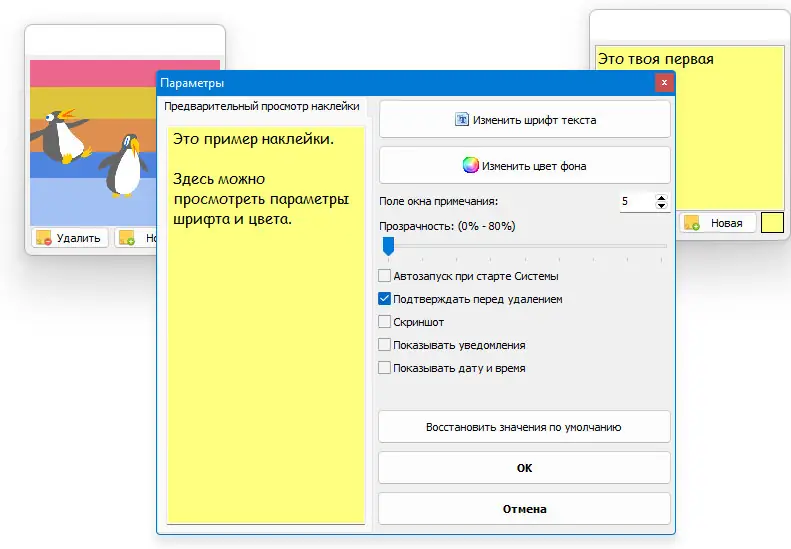 После запуска приложение интегрируется в системный трей, а его значок становится доступен в области уведомлений. Двойной клик по иконке мгновенно создаёт новую заметку, которую можно перемещать, изменять по размеру и закрывать. Внутри окна можно вводить текст, вставлять изображения из буфера обмена или перетаскивать графические файлы прямо в стикер. Функция напоминаний позволяет задавать регулярные уведомления — например, ежедневные или еженедельные, что полезно для контроля повторяющихся задач. Также доступны операции импорта и экспорта резервных копий, что обеспечивает безопасность данных при смене устройства или переустановке системы.