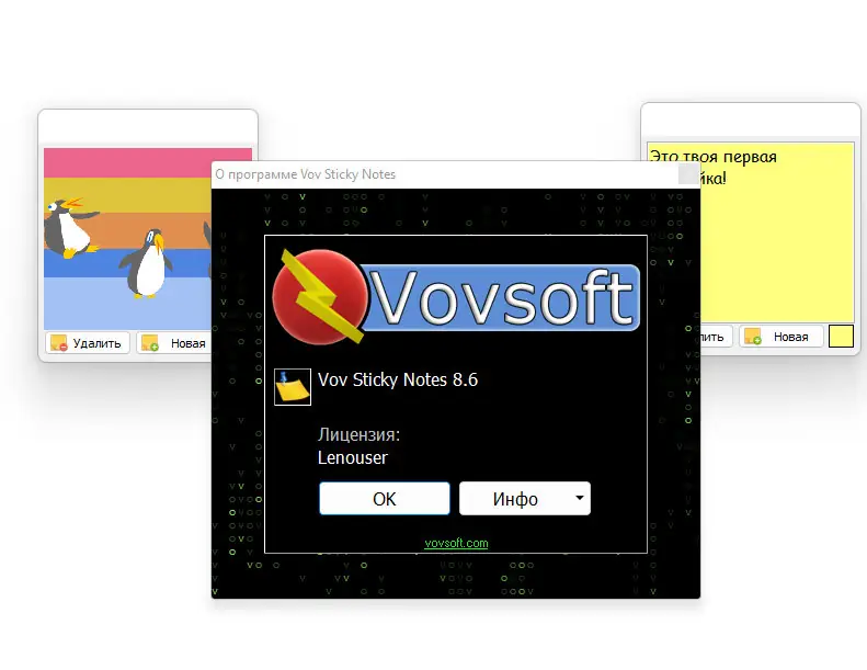Программа Vov Sticky Notes превращает пустое пространство рабочего стола в функциональную зону для ведения записей и планирования. Каждая заметка открывается в отдельном окне, которое можно перемещать, изменять по размеру и закреплять поверх других окон. Это особенно полезно при работе с несколькими приложениями одновременно — важная информация всегда на виду. Интерфейс минималистичен, не отвлекает и позволяет сосредоточиться на содержании.