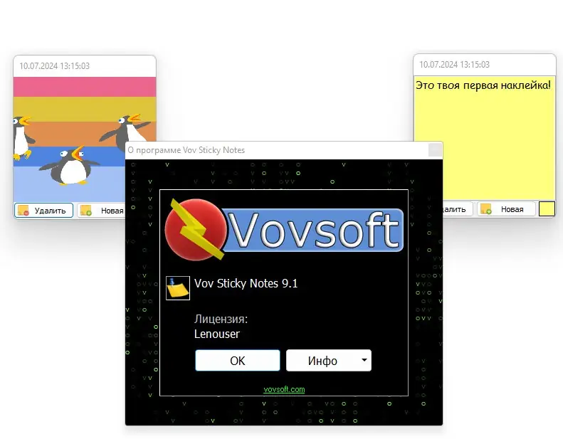 Vov Sticky Notes превращает пустое пространство на рабочем столе в функциональную зону для ведения заметок. Каждая заметка открывается в отдельном окне, которое можно перемещать, изменять по размеру и закреплять поверх других окон. Это особенно удобно при работе с несколькими приложениями одновременно — важная информация всегда на виду.