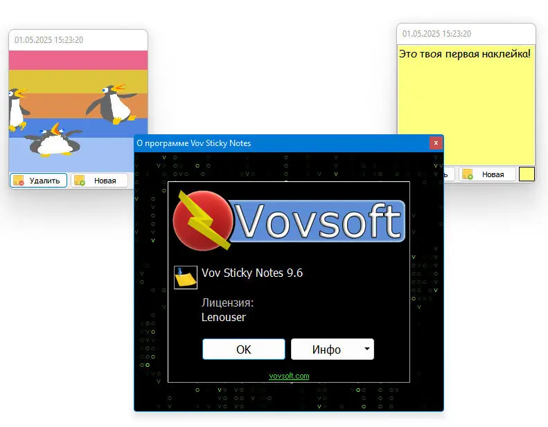 Vov Sticky Notes — это легковесное приложение для создания цифровых заметок на рабочем столе, позволяющее организовать повседневные задачи, напоминания и важную информацию в удобном визуальном формате. Программа интегрируется с системой минимально, не перегружая интерфейс, и при этом предлагает широкие возможности по настройке внешнего вида и функциональности стикеров. Подходит как для домашнего, так и для профессионального использования.