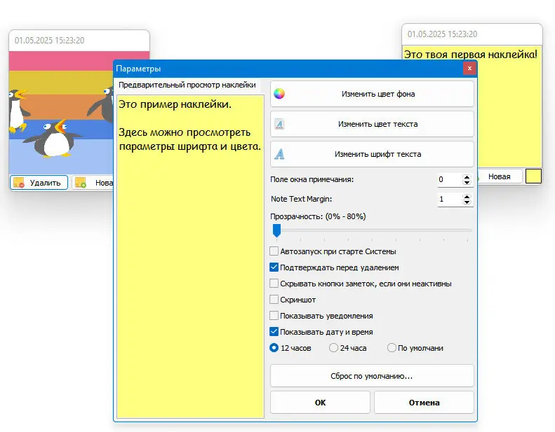 Использование приложения начинается с запуска через ярлык на панели задач. Двойной клик по иконке открывает новое окно заметки, в которое можно вводить текст, вставлять изображения из буфера обмена или перетаскивать графические файлы напрямую. Каждое окно можно закрепить поверх других приложений, изменить цвет фона, установить прозрачность и настроить шрифт. Для создания напоминания достаточно указать время и периодичность уведомления — ежедневно, еженедельно или однократно. Все изменения сохраняются автоматически, без необходимости ручного подтверждения.