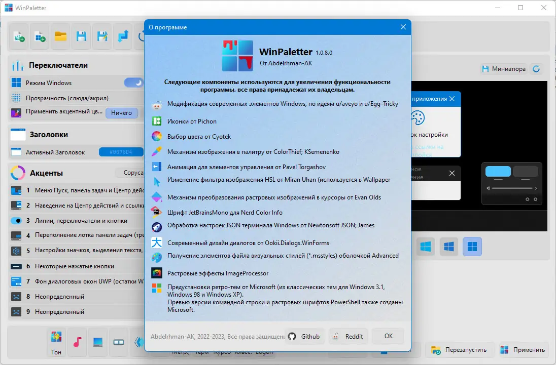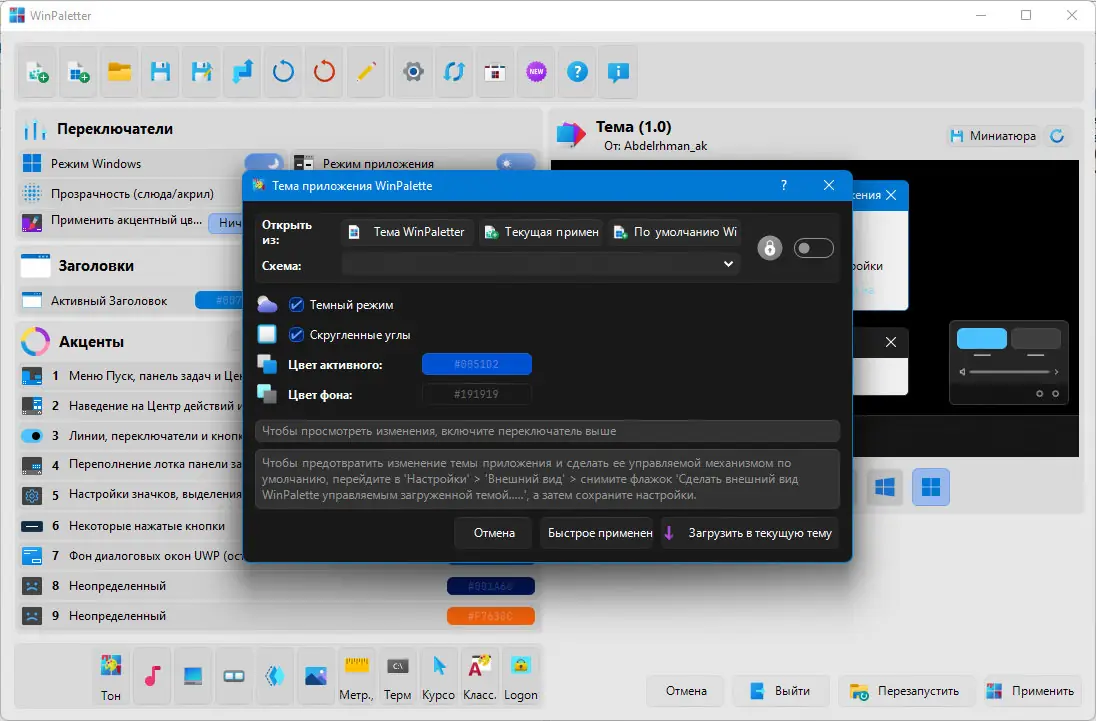 Программа сочетает в себе функциональность, стабильность и безопасность, позволяя глубоко кастомизировать систему без рисков для её целостности. WinPaletter не требует прав администратора для большинства операций и не оставляет следов в системе после закрытия, что особенно важно для портативного использования. При этом инструмент остаётся доступным для модификации даже сложных графических параметров, которые недоступны в стандартных настройках Windows.
