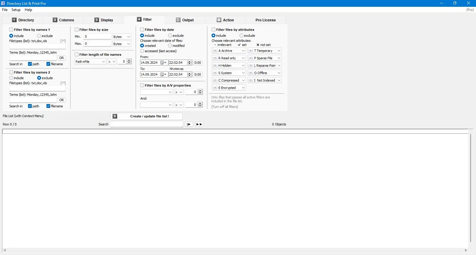 - Фильтрация файлов по расширению, дате, размеру и другим атрибутам.