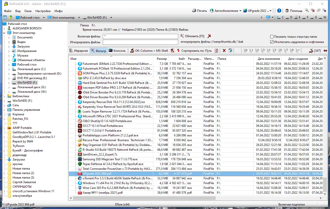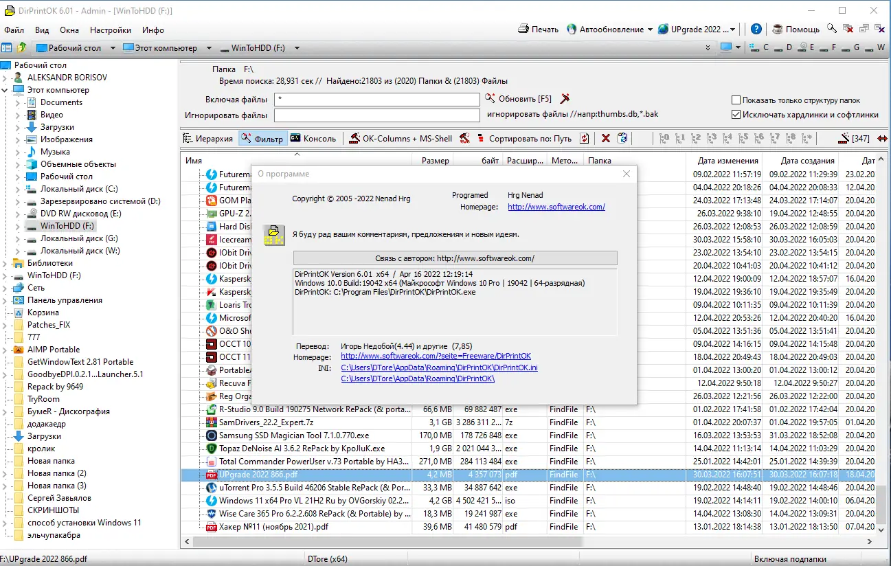 DirPrintOK — это специализированный инструмент, который упрощает задачу вывода информации о содержимом папок на печать или в файл. В отличие от стандартного проводника Windows, программа предоставляет расширенные возможности по отображению, сортировке и экспорту данных о файлах и директориях. Она идеально подходит для архивирования структуры каталогов, инвентаризации файлов и подготовки отчётов.