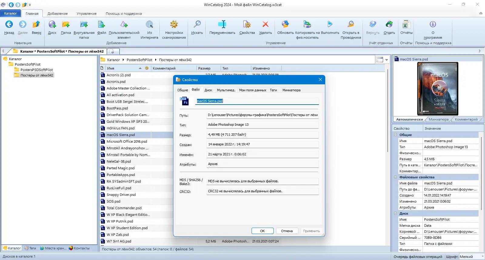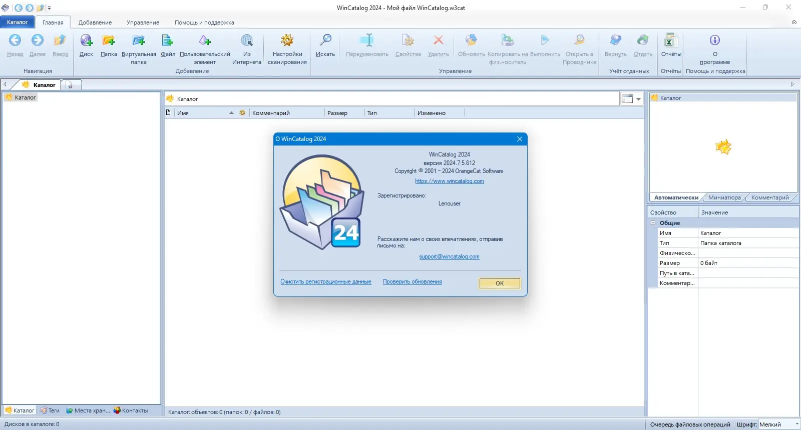 WinCatalog предназначен для систематизации цифровых и физических носителей, объединяя их содержимое в единую базу данных. Программа поддерживает сканирование не только локальных папок и дисков, но и архивных файлов формата ZIP, что позволяет просматривать их содержимое без распаковки. Особенностью является автоматическое извлечение информации из MP3-файлов, включая теги и названия треков, а также подключение к базе данных CDDB для получения данных об аудиодисках.