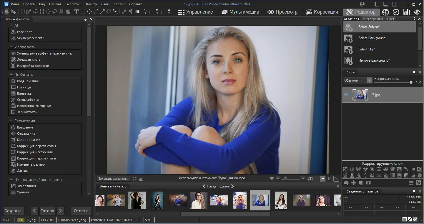 ACDSee Photo Studio Ultimate — универсальный инструмент для обработки и управления цифровыми изображениями, сочетающий мощные функции редактирования, поддержку RAW-форматов и эффективную организацию фотоархивов. Программа ориентирована на профессионалов и энтузиастов, предлагая полный контроль над цветом, метаданными и структурой изображений. С её помощью можно быстро оптимизировать большие коллекции, применяя пакетные операции и точные настройки.