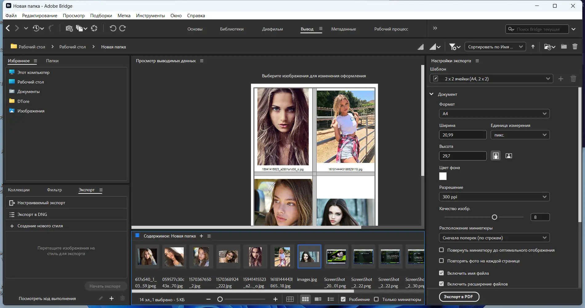 Работа с Adobe Bridge начинается с навигации по папкам с помощью усовершенствованной панели «Путь», где можно быстро переходить между каталогами. Через интерфейс программы осуществляется предварительный просмотр файлов без необходимости их открывать в сторонних приложениях. Функция перетаскивания ресурсов позволяет напрямую импортировать изображения в Photoshop как смарт-объекты, а векторные файлы — в макеты InDesign, что значительно ускоряет процесс верстки и редактирования. Пакетное переименование файлов настраивается с помощью шаблонов, включая функции «Найти и заменить» и автоматическую нумерацию. Для веб-разработчиков доступна опция экспорта HTML- и SWF-галерей с отображением имен файлов и водяными знаками в PDF.