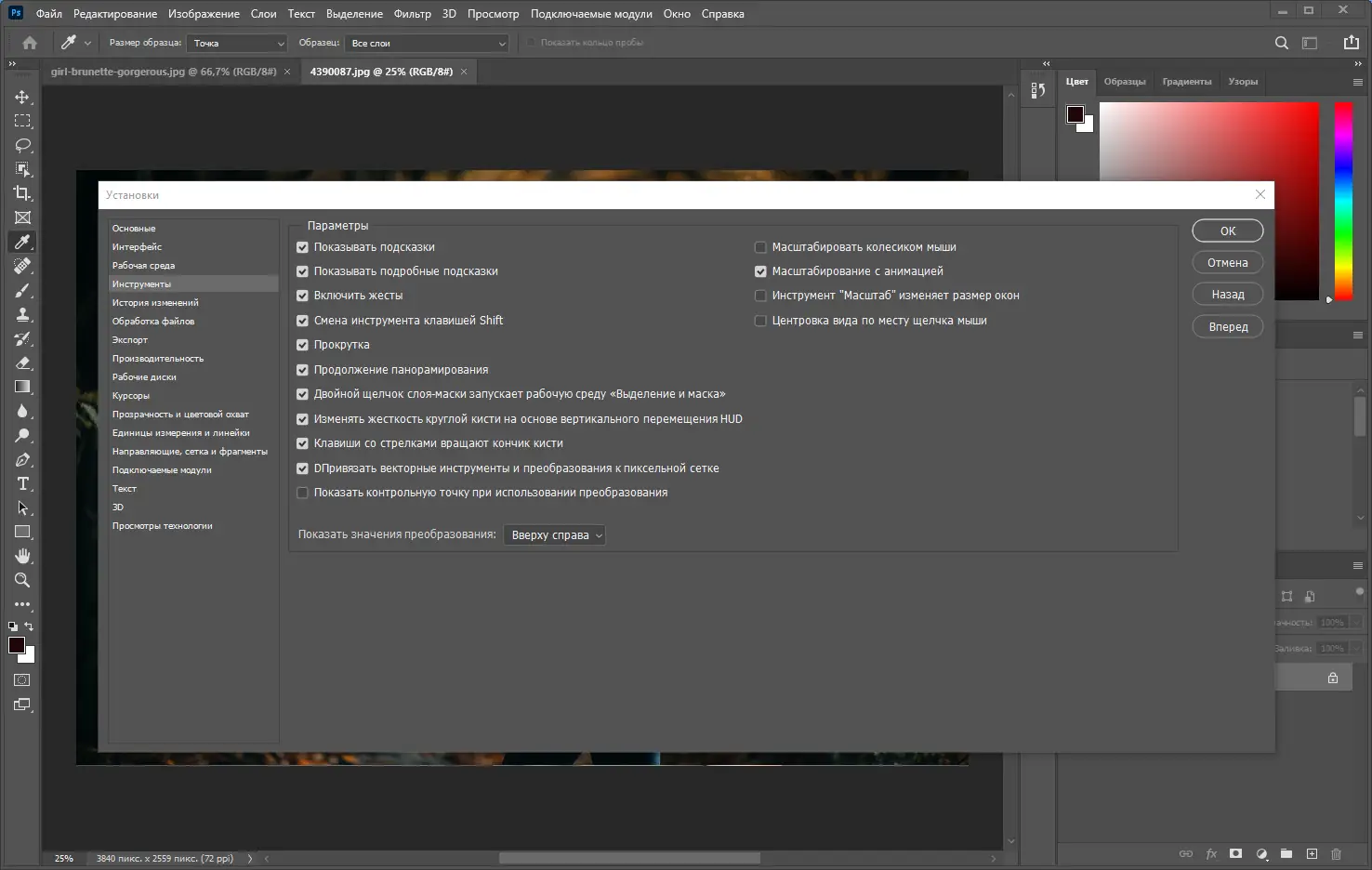 - Инструменты для ретуши, восстанавливающей кисти и точечного восстановления
