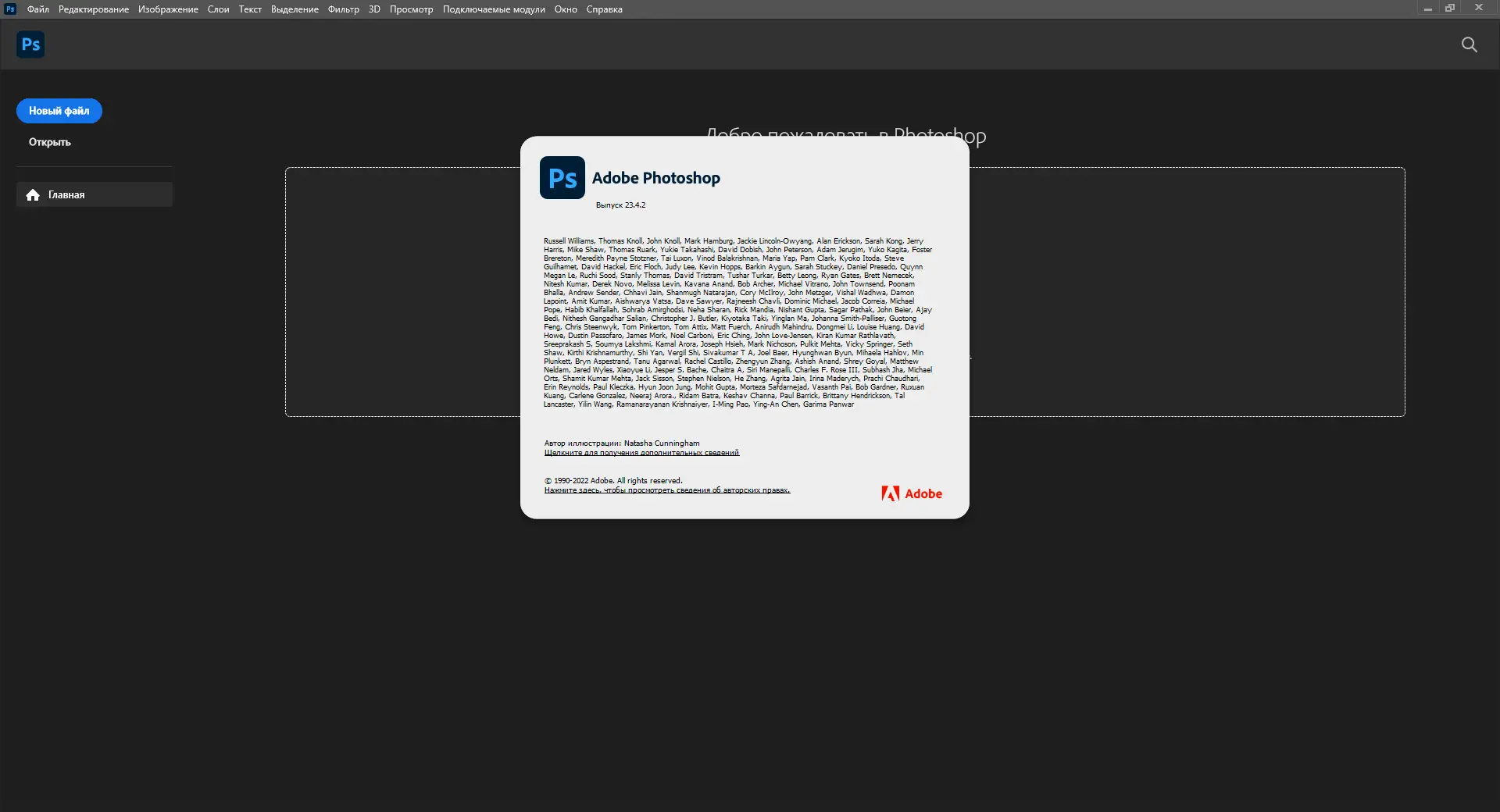 Adobe Photoshop 2022 — профессиональный редактор растровой графики, предназначенный для создания и обработки изображений высокого качества. Программа предлагает расширенные инструменты для ретуши, цветокоррекции, коллажирования и работы со слоями. Поддержка множества форматов делает её универсальным решением для дизайнеров, фотографов и иллюстраторов.