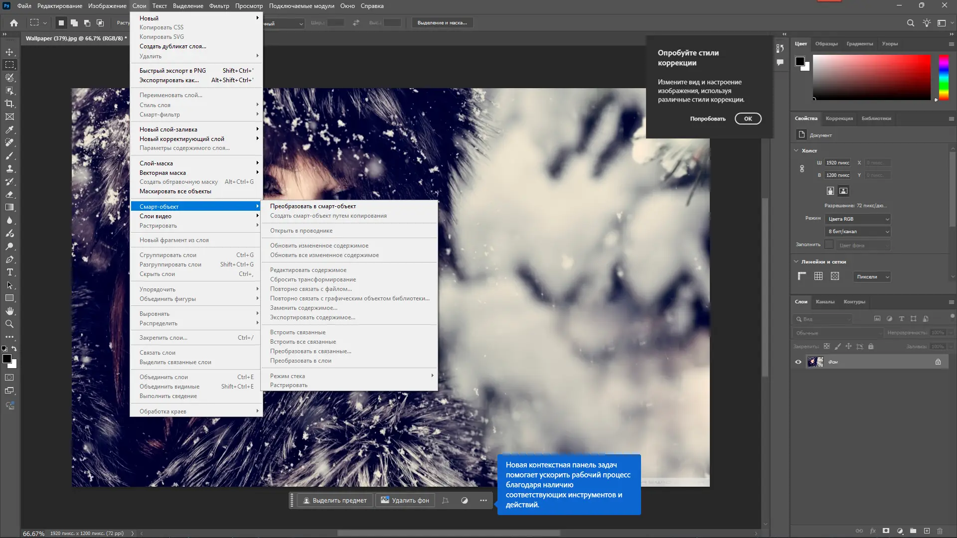 - Инструменты выделения с искусственным интеллектом: быстрое выделение объектов, фоны и сложных контуров.
