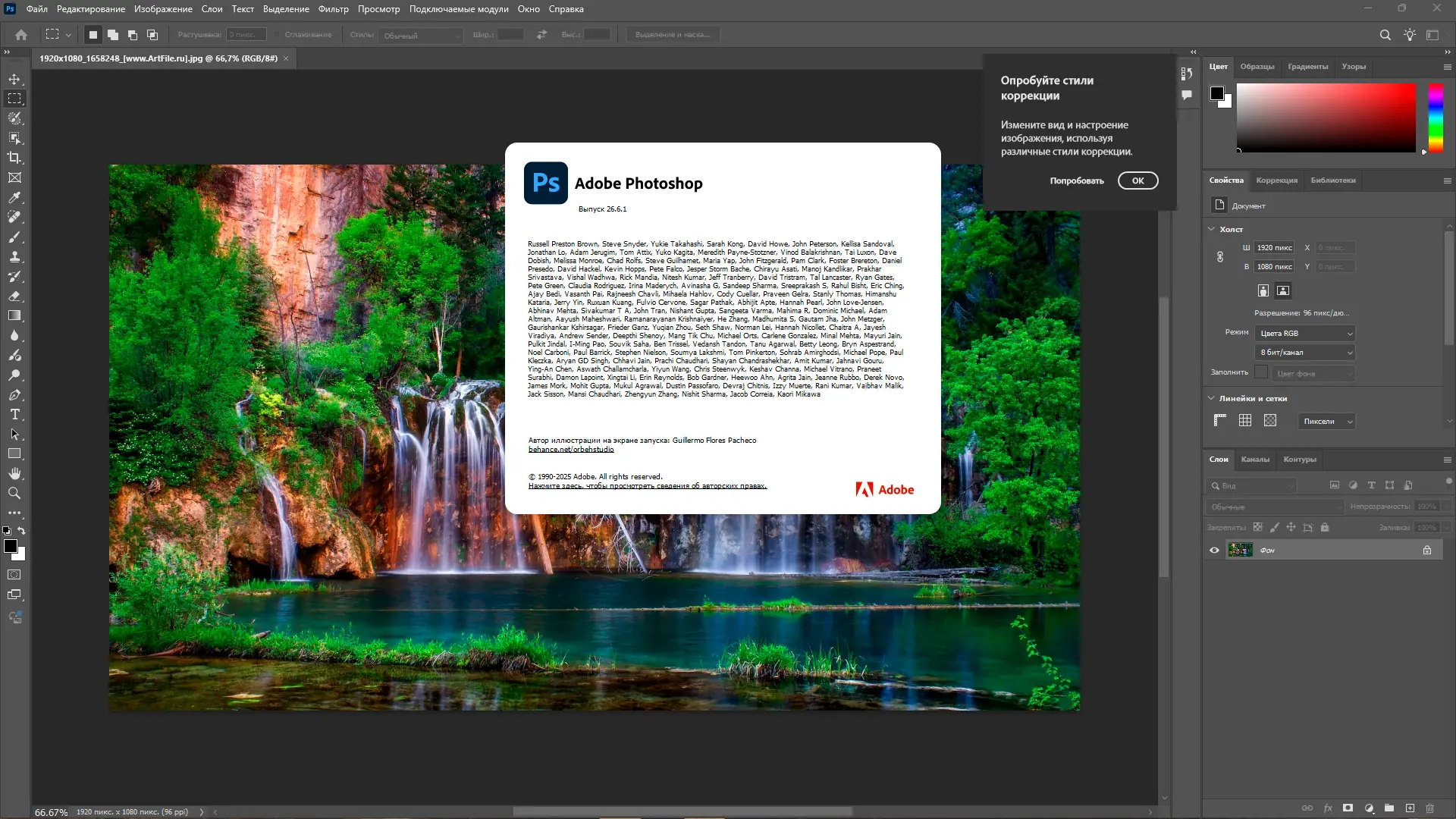 Adobe Photoshop 2025 — это мощное программное решение для художников, фотографов, дизайнеров и веб-разработчиков, предоставляющее полный контроль над каждым пикселем изображения. Программа поддерживает работу с многослойными файлами, позволяет выполнять точное выделение объектов, использовать векторные маски и контуры, а также реализовывать сложные эффекты с помощью фильтров и корректирующих слоёв. Новая версия предлагает улучшенные алгоритмы обработки, более плавное взаимодействие с другими приложениями Adobe и расширенные возможности для совместной работы.