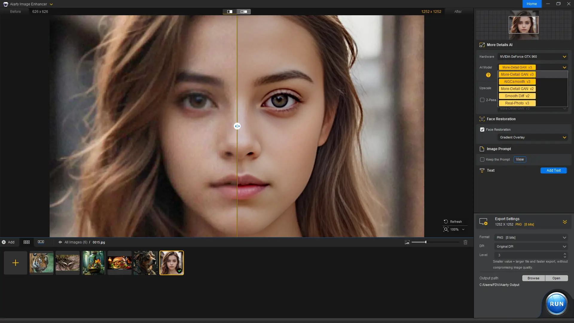 Новая версия 3.3 включает улучшенные models, такие как More-Detail GAN v3 и AIGCsmooth v3, а также функцию восстановления лиц с градиентным наложением.