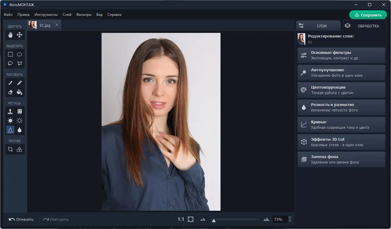 AMS ФотоМОНТАЖ — мощный редактор фото с поддержкой слоёв, позволяющий создавать реалистичные коллажи, улучшать качество снимков и выполнять профессиональную ретушь. Программа включает инструменты для замены фона, автоматической цветокоррекции, рисования и точечной коррекции. Подходит как новичкам, так и опытным пользователям, желающим работать с изображениями на продвинутом уровне.