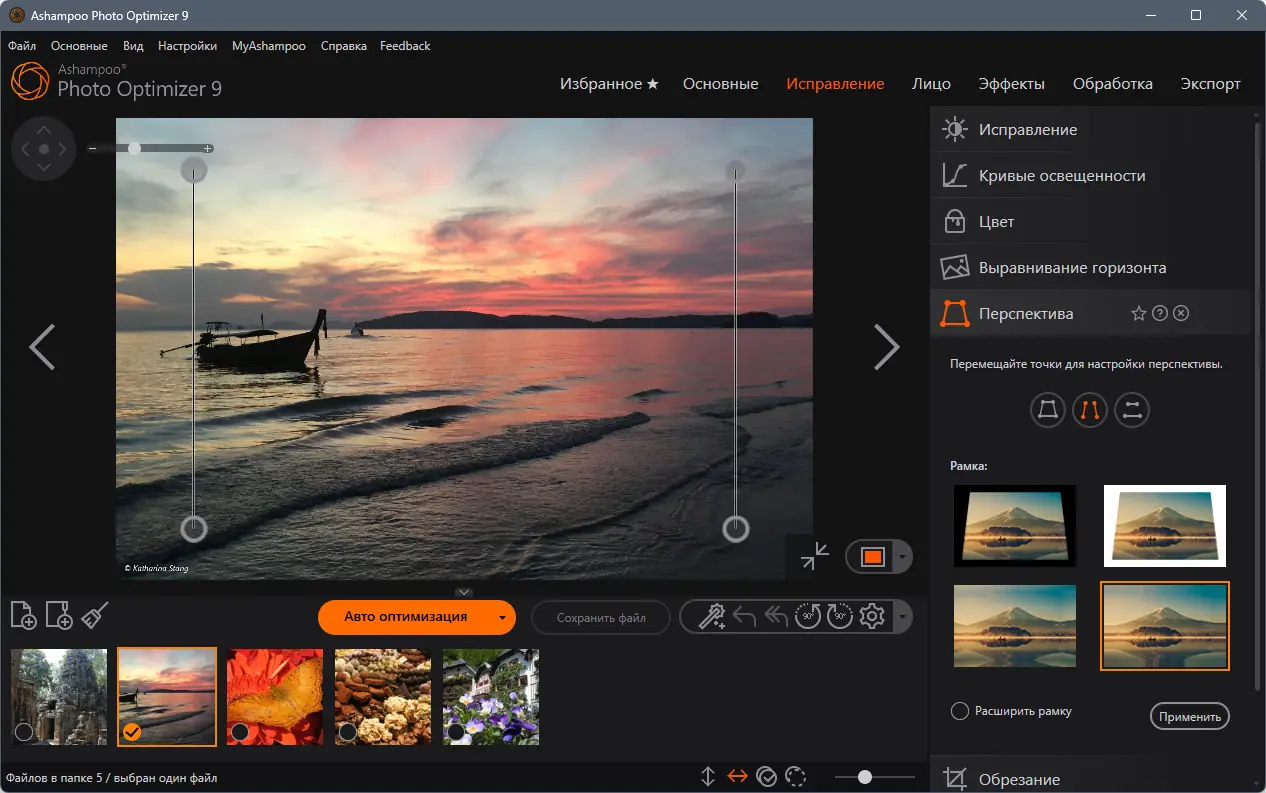 Программа Ashampoo Photo Optimizer 9 разработана для тех, кто хочет улучшить качество своих фотографий без сложных настроек и длительного обучения. Она автоматически определяет дефекты изображений — будь то недостаточный контраст, искажённая перспектива или неправильный баланс белого — и устраняет их с высокой точностью. При этом сохраняется естественность снимков, что особенно важно при работе с портретами и пейзажами. Алгоритмы обработки адаптированы под современные камеры и смартфоны, обеспечивая стабильные результаты даже на слабо освещённых или размытых фото.