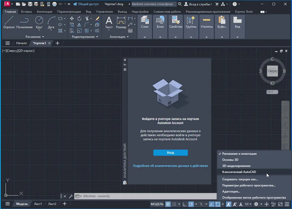 AutoCAD — это мощный инструмент для проектирования, который уже десятилетия задаёт стандарты в области компьютерного черчения. Программа поддерживает как двухмерное, так и трёхмерное моделирование, что делает её универсальным решением для различных отраслей. Возможности программного обеспечения позволяют создавать детализированные проекты, от простых схем до сложных архитектурных и инженерных решений. Гибкая система настроек и поддержка формата DWG обеспечивают совместимость с другими CAD-системами и упрощают обмен данными между специалистами.
